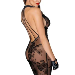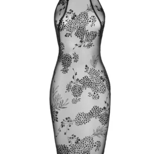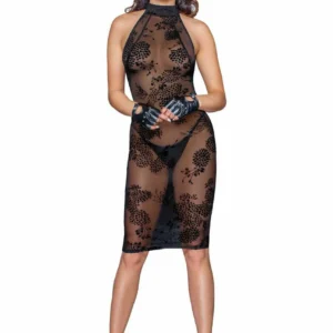 Description du produitPowernet élastiqueDos nuTransparentRobe midiRobe mi-longue en tulle avec broderie floquée à motifs et bretelles en velours dans le dos, l’équilibre parfait entre le transparent et le sulfureux.