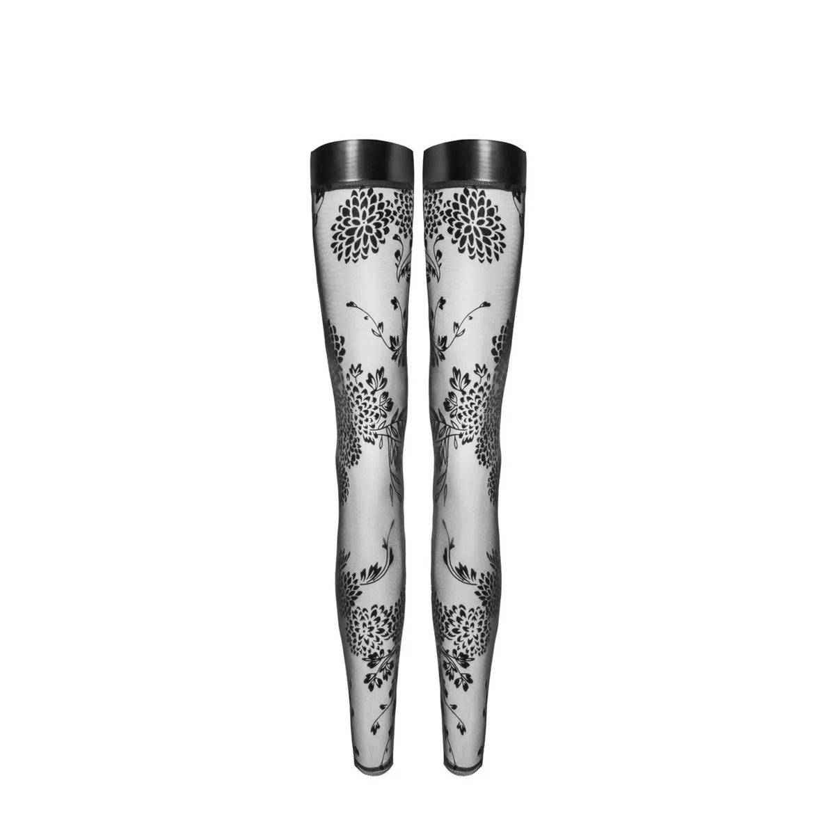 F243 Tüllstrümpfe mit Flockstickerei und Mustern