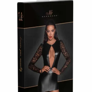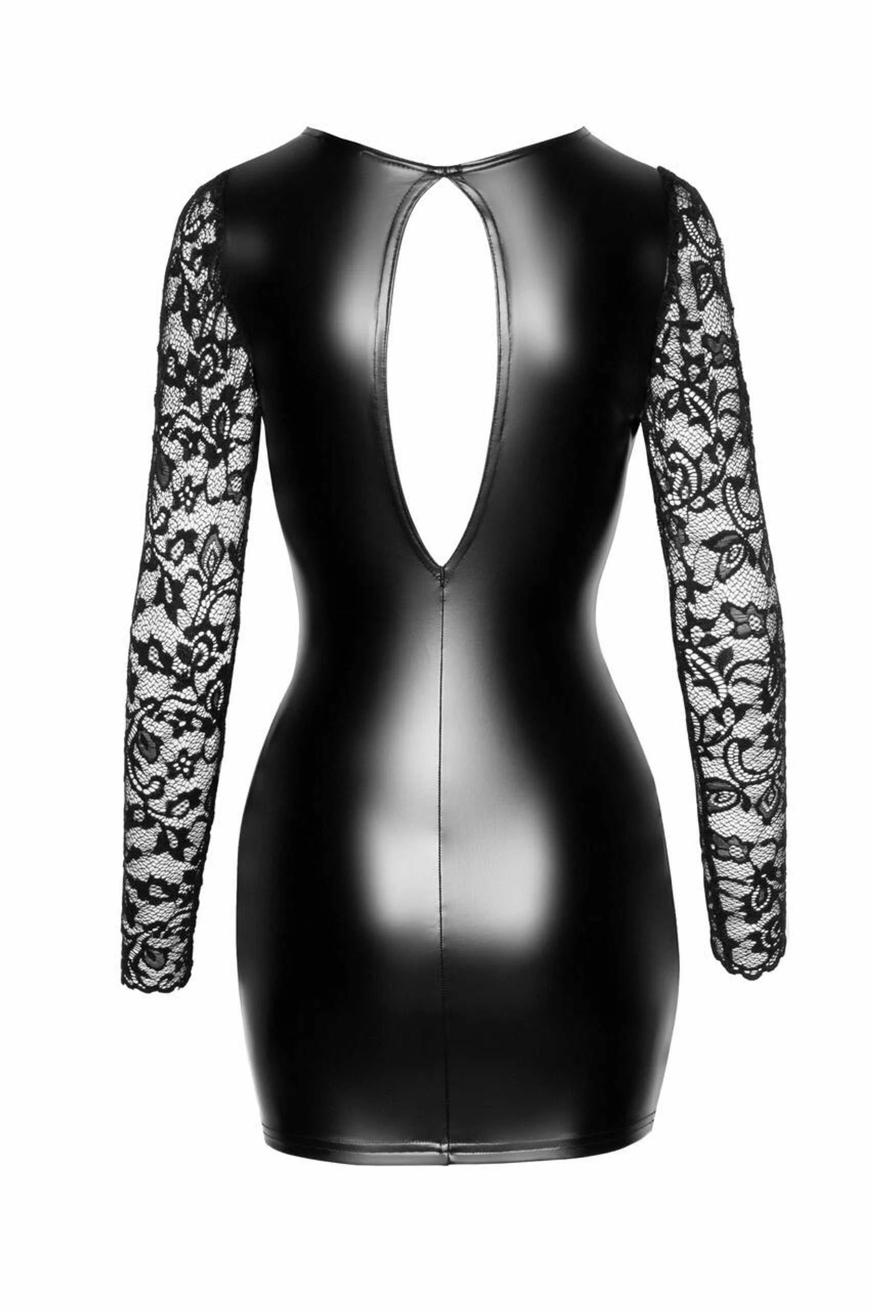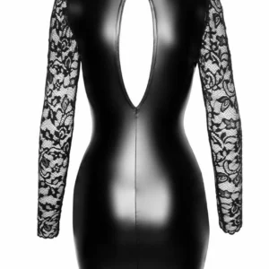 F253 Robe courte en Powerwetlook avec manches en dentelle