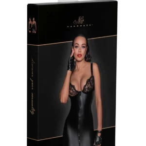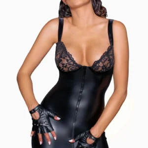 F254 Mini-robe Powerwetlook avec poitrine en dentelle et fermeture éclair à 2 sens