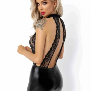 Description du produitWetlook élastiqueDentelle élastiqueDos nuMini robeCette robe met en valeur la féminité et la silhouette de la meilleure façon qui soit. Le haut est en dentelle avec une fente allant de l’encolure à la jupe powerwetlook en passant par le dos et les côtés ouverts.