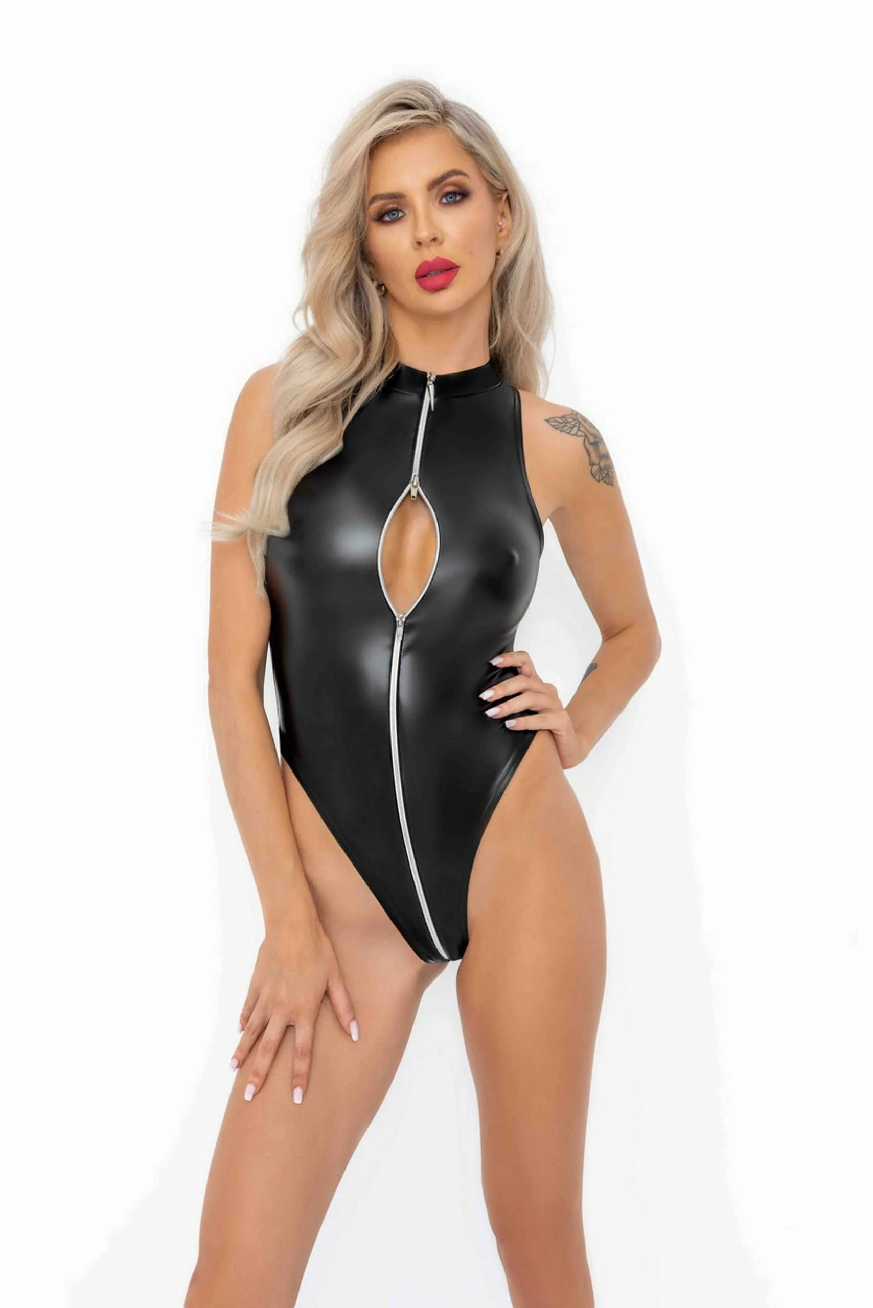 F294 Body Powerwetlook avec fermeture éclair sur le devant