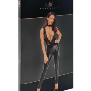 Description du produitDentelle élastiqueWetlook élastiqueFermeture éclairTransparentFaites l’expérience de la sensualité à l’état pur dans cette combinaison de chat en dentelle et wetlook, dotée d’un décolleté en V profond séduisant et d’un dos ouvert. Elle est dotée d’un col en velours luxueux et d’une chaîne en perles noires et argentées sur le devant, ainsi que d’une fermeture à glissière à l’entrejambe pour un accès rapide.