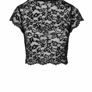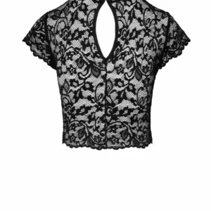 Description du produitDentelle élastiqueTransparentCe top en dentelle séduisant présente des manches capuchon, un col montant et une fermeture à crochet dans le dos. Rehaussé d’une fente dans le haut du dos, il dégage des ondes indéniables.