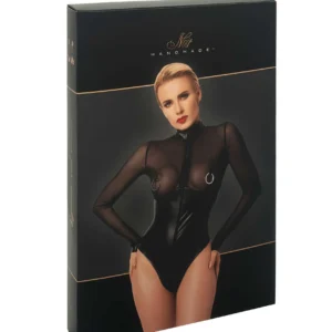 Découvrez le mélange parfait de séduction et d’espièglerie avec notre séduisant body. Cette pièce enchanteresse est dotée d’un design captivant qui ne manquera pas de laisser une impression durable.Design: Avec une coupe moulante et sexy qui met en valeur votre curves, ce body dégage de l’assurance et de l’allure. La partie supérieure est composée d’un tulle doux et extensible, entièrement transparent, qui crée un effet aguicheur et séduisant. Des anneaux métalliques stratégiquement cousus à la hauteur des seins ajoutent un élément d’intrigue, ce qui en fait un choix idéal pour les moments spéciaux.Col haut: Le col montant, en powerwetlook, ajoute une touche de sophistication à l’ensemble, contrastant joliment avec le tulle transparent. Manches longues: Les manches longues en tulle doux offrent une allure délicate mais séduisante, rendant vos bras et votre silhouette encore plus irrésistibles.Détail de la fermeture éclair : Une fermeture éclair s’étend du col jusqu’à l’entrejambe, ce qui vous permet de vous glisser facilement dans cette pièce séduisante et d’en dévoiler autant ou aussi peu que vous le souhaitez. C’est un détail provocateur qui ajoute une couche d’excitation à votre tenue.Style: Ce body est conçu pour être séduisant, pervers et ludique. Il est parfait pour les moments intimes où vous voulez allumer l’étincelle de la passion et explorer vos désirs.
