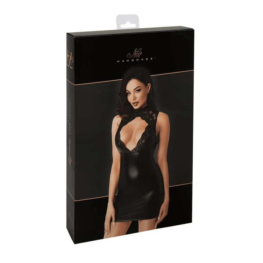 ProduktbeschreibungElastische SpitzeElastischer WetlookRückenfreiMinikleid Dieses Minikleid vereint die verführerische Eleganz der Spitze mit dem eleganten Schnitt des Power Wetlook und schafft einen Look, der sowohl kühn als auch anspruchsvoll ist. Entworfen, um die Silhouette zu betonen, ist dieses Kleid perfekt, um einen bleibenden Eindruck zu hinterlassen.Material:Oberteil: Der obere Teil ist mit einer komplexen elastischen Spitze verziert, die das Dekolleté und den Rücken schön umrahmt und eine zarte Eleganz hinzufügt.Unterteil des Kleides: Der Körper des Kleides besteht aus einem dehnbaren Power Wetlook-Stoff, der einen glatten, körperbetonten Schnitt bietet, der jede Kurve betont.Design: Der tiefe Ausschnitt und der offene Rücken, umrahmt von Spitze, schaffen eine auffällige Silhouette, die sowohl kühn als auch raffiniert ist. Der hohe Spitzenkragen fügt dem Ganzen eine anspruchsvolle Note hinzu.Schnitt: Dieses Minikleid ist so geschnitten, dass es den Konturen des Körpers folgt und einen schmeichelhaften und selbstbewussten Schnitt bietet, der die natürlichen Formen der Trägerin betont.Ideal für Partys, intime Abende oder um ein kühnes Statement zu setzen, ist dieses Kleid für diejenigen gedacht, die Eleganz mit einem Hauch von Kühnheit kombinieren möchten. Es ist ein vielseitiges Stück, das jede gewagte Garderobe mühelos aufwertet.Material:Hauptstoff: 85 % Polyamid, 15 % Elasthan