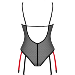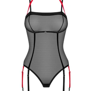 Sentez-vous séduisante et féminine comme jamais auparavant ! Ce body vous apportera le confort que vous méritez. Votre beauté naturelle sera mise en valeur par la coupe minimaliste. Le tissu transparent et le dos nu porté autour du cou mettent subtilement en valeur la poitrine. Soyez sauvage avec du style !Plus de détails :- body noir- coupe qui met en valeur les atouts féminins- ajustement parfait grâce aux bretelles réglables- sangle confortable portée autour du cou- pendentif brillant – donne du style- jarretelles en noir et rouge – à détacher quand vous le souhaitez- tissu délicat au toucher avec des éléments en velours – garantie de confort 94 % polyamide, 6 % élasthanne