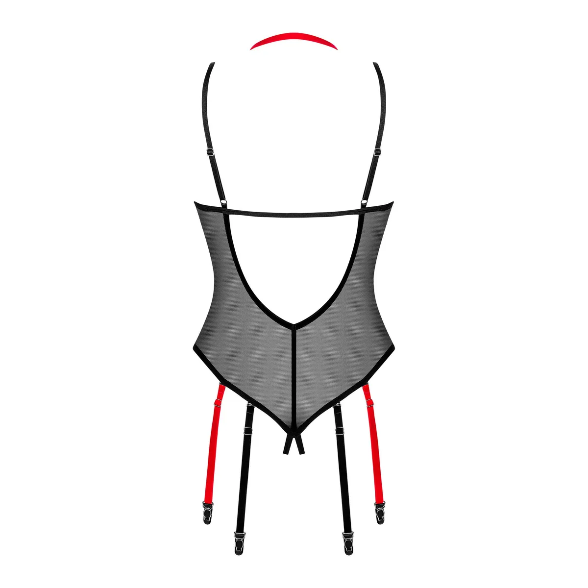 Setzen Sie ein Lächeln auf das Gesicht Ihrer Lieblingsperson und lassen Sie ihr Herz schneller schlagen! Ziehen Sie einfach diese sexy Dessous an – Erfolg garantiert! Der verführerische offene Schnitt und die faszinierende Stoffauswahl werden die Leidenschaft um Sie herum entfachen. Seien Sie bereit, die Welle des Vergnügens zu erleben, die auf Sie zukommt! Weitere Details: – schwarzer Body – offener Schnitt – Garantie für eine heiße Atmosphäre – hervorragende Passform dank verstellbarer Träger – Riemen um den Hals – betont subtil die Büste – silbernes Detail – ein Hauch von Originalität – doppelte Strumpfhalter – in zwei Farben – leicht transparenter Stoff und Samtelemente 94 % Polyamid, 6 % Elasthan