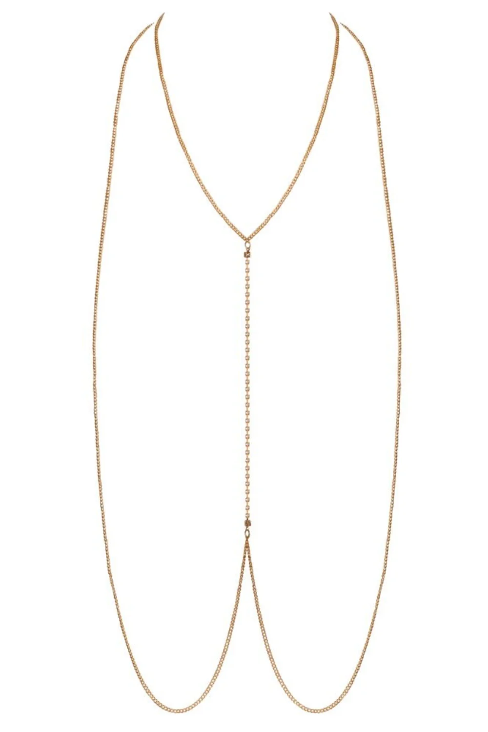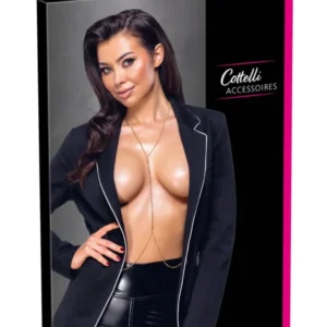 Bringen Sie Glamour in Ihre Sammlung mit dieser unwiderstehlich glamourösen goldenen Körperkette von Cottelli ACCESSOIRES. Elegant, sinnlich und kühn, besteht sie aus zwei langen goldenen Ketten, die vorne durch eine 19 cm lange, funkelnde Strasskette verbunden sind, die das Licht einfängt und alle Blicke auf sich zieht.