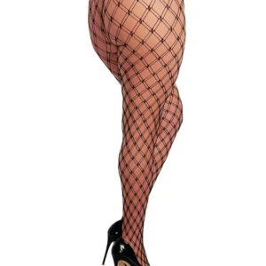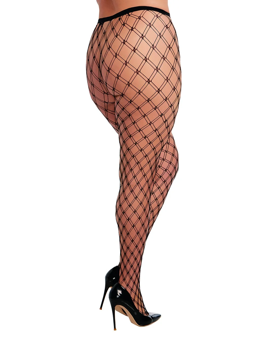 Großmaschige Netzstrumpfhose in Übergröße mit Rautenmuster – DG0369XBLK