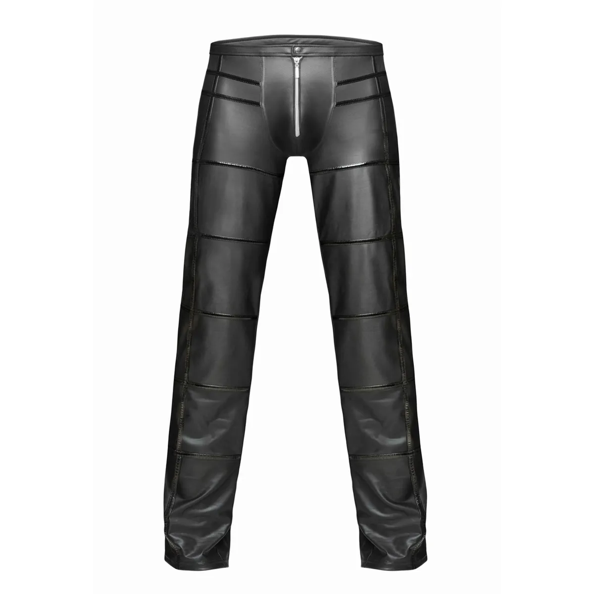 Wetlook elastischKnöpfeReißverschlussLange Hose im Wetlook mit tollen PVC-Applikationen, die Vorderseite kann mit einem Reißverschluss geöffnet werden. Die Hose ist aus weichem Wetlook gefertigt – daher passt sie sich perfekt Ihrem Körper an.Hauptstoff: 90% Polyester 10% Elasthan Polymerbeschichtung