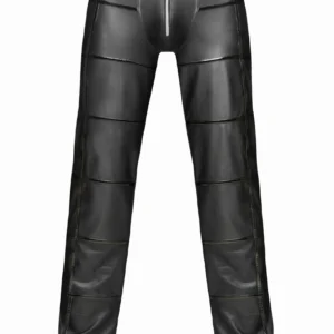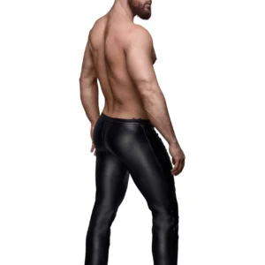 Wetlook élastiqueBoutonsFermeture éclairPantalon long unique en wetlook avec de superbes applications en PVC, le devant peut être ouvert par une fermeture éclair. Le pantalon est fabriqué en Wetlook doux – c`est pourquoi il s`adapte parfaitement à votre body.Tissu principal : 90% polyester 10% élasthanne Enduit Polimer