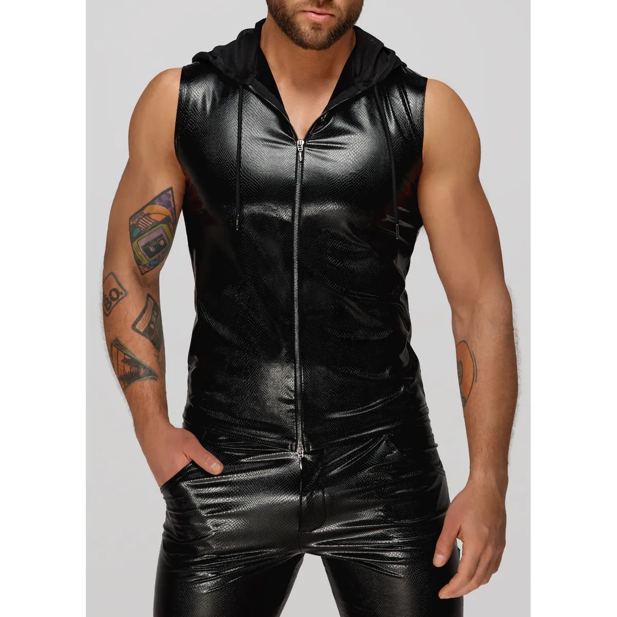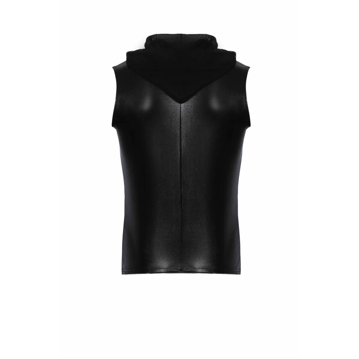 H066 Ärmelloses, transparentes Kapuzen-Top mit Reißverschluss im Schlangenlook