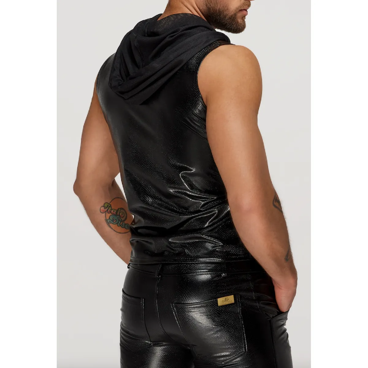Bedrucktes elastisches Wetlook-Powernet, elastischer Reißverschluss. Alle Männer sind Monster in diesem super sexy ärmellosen Oberteil. Hergestellt in einem sehr trendigen Schlangenlook, ist es mit einer transparenten Kapuze ausgestattet. Hauptstoff: 90% Polyester, 10% Elasthan mit Polymerbeschichtung.