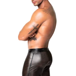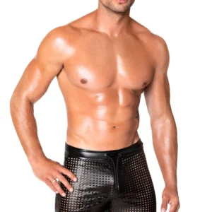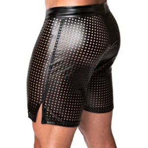 Wetlook élastiqueCe short est un excellent complément à toute garde-robe, idéal pour ceux qui aiment se distinguer lors de fêtes, d’événements ou même de sorties décontractées. La conception perforée unique offre un effet visuel saisissant et garantit la respirabilité.Matériau : Fabriqué en tissu Power Wetlook de haute qualité, il offre une grande durabilité et une finition élégante et brillante.Design perforé : Le short est doté d’un motif perforé distinctif qui n’est pas seulement élégant, mais qui assure également une ventilation pour un plus grand confort.Laçage avant : Comprend un laçage sur le devant, qui permet d’ajuster la coupe et d’ajouter une touche de style supplémentaire.Taille élastique : La ceinture élastique assure un ajustement confortable et sûr, parfait pour différents types de body .Utilisation polyvalente : Idéal pour les boîtes de nuit, les fêtes ou tout autre événement où il est important de se faire remarquer.Tissu principal : 76% polyester, 24% élasthanne, enduction Polimer