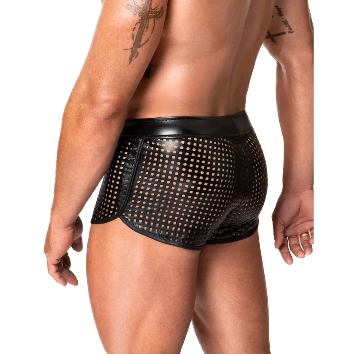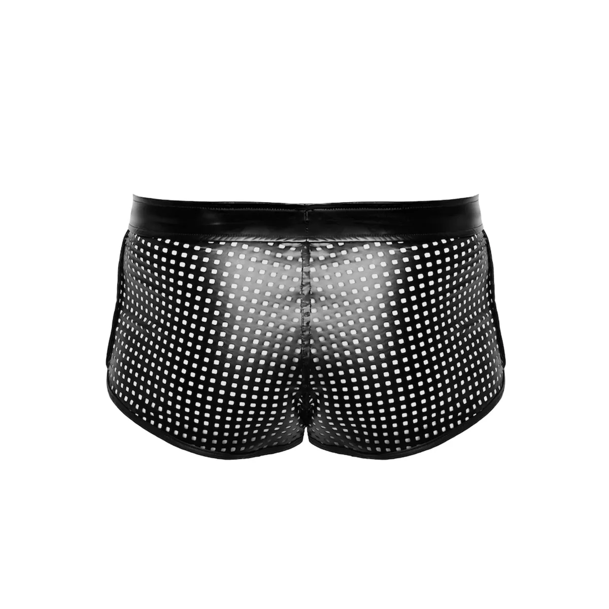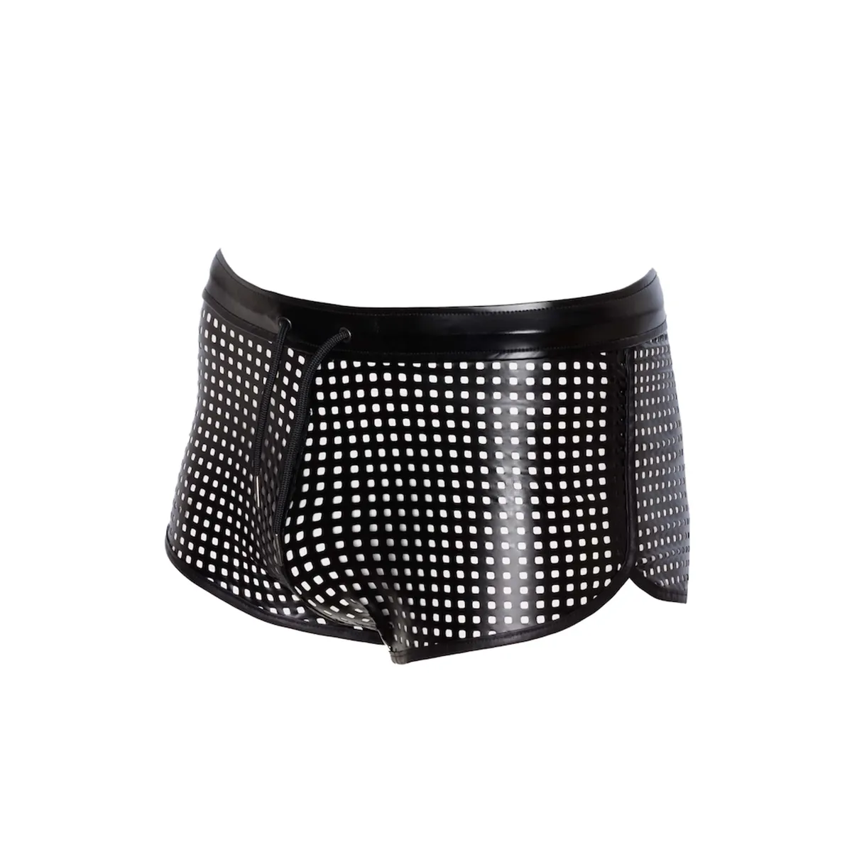 Elastisches Wetlook Diese Slips haben ein markantes perforiertes Design, das sie ideal für verschiedene Anlässe macht, von Clubabenden bis hin zu intimen Umgebungen. Material: Hergestellt aus hochwertigem Power Wetlook-Stoff, garantiert es Haltbarkeit und eine glatte, glänzende Oberfläche. Perforiertes Design: Das einzigartige perforierte Muster bietet nicht nur einen auffälligen visuellen Effekt, sondern auch eine bessere Atmungsaktivität. Vorderes Schnürsystem: Enthält ein verstellbares vorderes Schnürsystem, das einen Hauch von Stil hinzufügt und eine individuelle Anpassung ermöglicht. Elastischer Bund: Der elastische Bund sorgt für einen bequemen und perfekten Sitz für den ganzen Abend. Schnitt und Passform: Entwickelt, um eine schmeichelhafte Passform zu bieten und gleichzeitig vollständige Abdeckung und Unterstützung zu gewährleisten. Hauptstoff: 76% Polyester, 24% Elasthan, Polimerbeschichtung.
