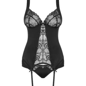 Cherchez-vous une guêpière incroyable pour une occasion spéciale ? La guêpière Heartina a été fabriquée dans des matières douces et délicates laissant apparaitre par transparence les détails de votre corps. Le rouge est une couleur torride mais? le noir peut être encore plus attrayant et glamour ! Découvrez cette pièce de lingerie unique qui vous fera passer des moments uniques et inoubliables avec votre partenaire. Vous allez tomber sous le charme de ce confort unique ajustée à votre corps grâce à toutes les solutions apportées par la lingerie Obsessive.Composition : 90% polyamide, 10% élasthanne