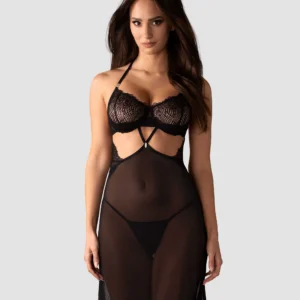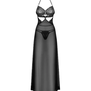 Iliosa Nuisette et stringUne longue nuisette captivante en tulle transparent et doux. Le motif floral noir sur le soutien-gorge, associé à des accents de dentelle et à des découpes sous la poitrine, crée une silhouette irrésistible. Plusieurs caractéristiques réglables assurent à la fois le confort et un ajustement sur mesure.- Nuisette noire avec string classique- Riches embellissements en dentelle- Tissu transparent et doux- Bonnets à armatures- Détails argentés- Bretelles réglables au dos et au cou- Fermeture à crochet et à l??il- 94% polyamide, 6% élasthanne- Conçu dans l?UECe produit ne convient pas aux enfants de moins de 3 ans ? risque d?étouffement dû à la présence de petites pièces qui peuvent être détachées du produit.