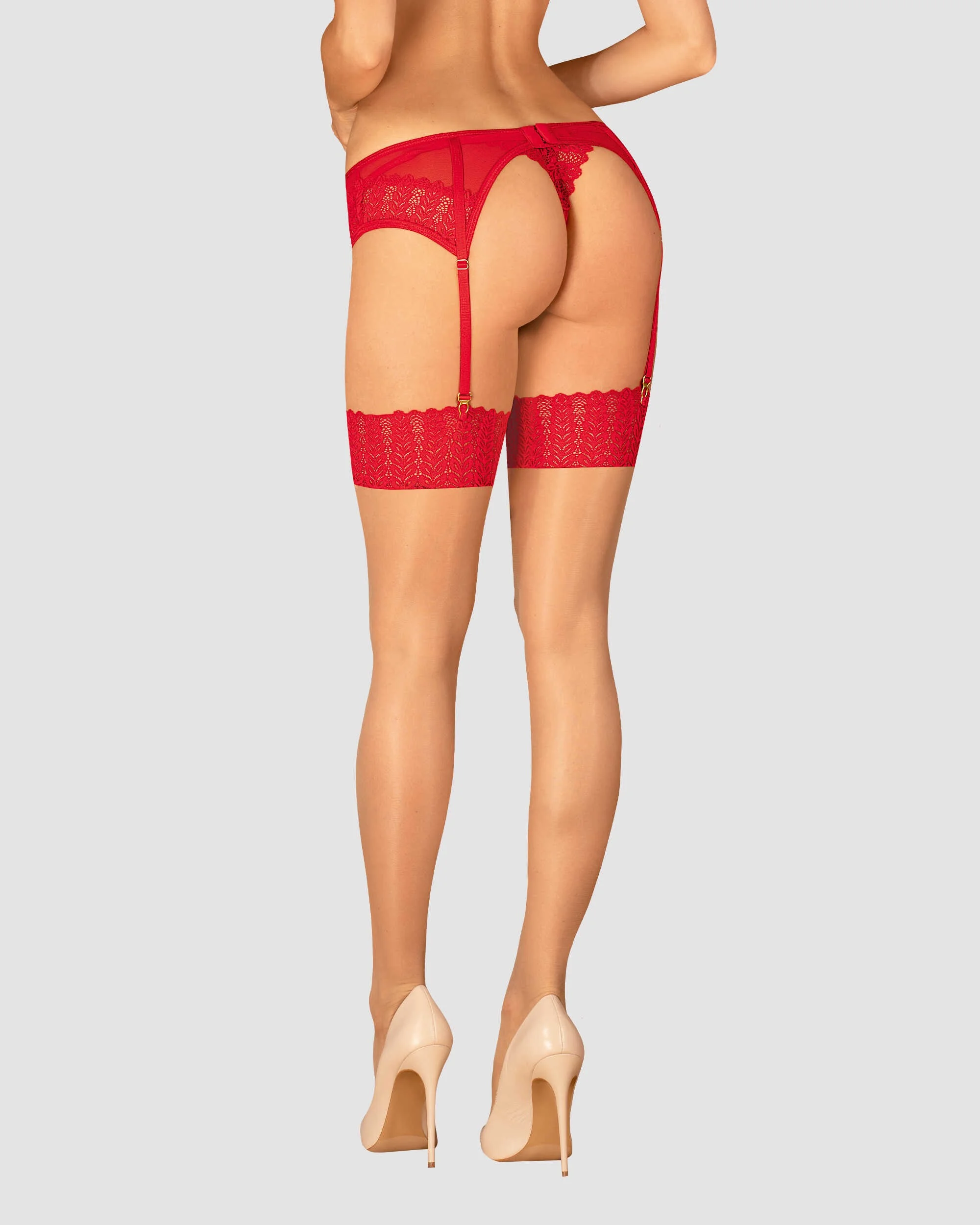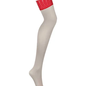 Pimentez votre style avec un accessoire rebelle. Ces bas nude, légèrement transparents, affineront parfaitement vos jambes. Le bord en dentelle d’un rouge intense vous donnera du sex-appeal, éveillera votre imagination et vous fera sentir remplie d’énergie féminine. Constatez par vous-même que vous ne voudrez plus les enlever !Plus de détails :- bas sexy- couleur beige – pour mettre en valeur les jambes- finition en dentelle rouge sophistiquée – difficile à manquer- ce modèle n’est pas autoportant- grande élasticité du tissu – assure le confort Composition : 85 % polyamide, 15 % élasthanne