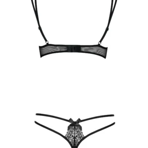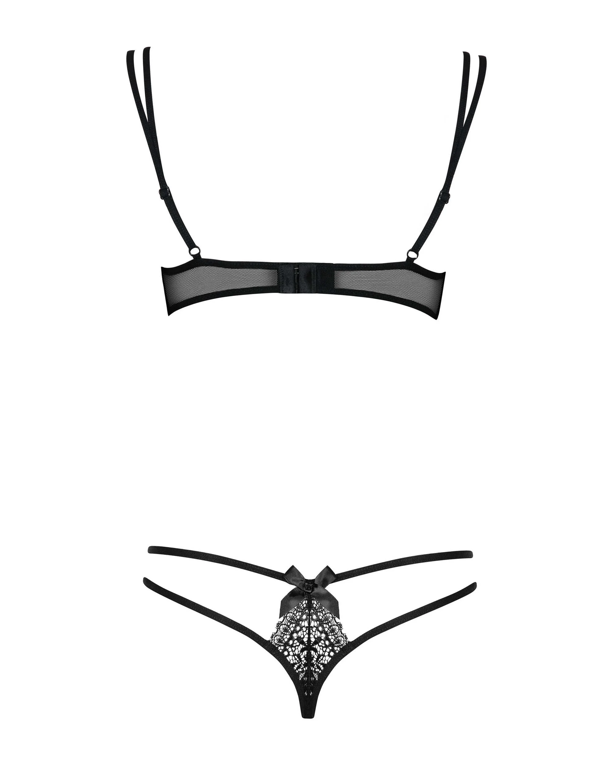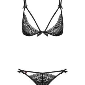 Ensemble séduisant pour une soirée sexy parfaite ! Soutien-gorge en fine dentelle et noeuds délicats qui apportent un charme fou à cet ensemble de lingerie noir. Les lanières présentes sur la poitrine soulignent les courbes et mettent en valeur le décolleté.Composition : 90% polyamide, 10% élasthanne