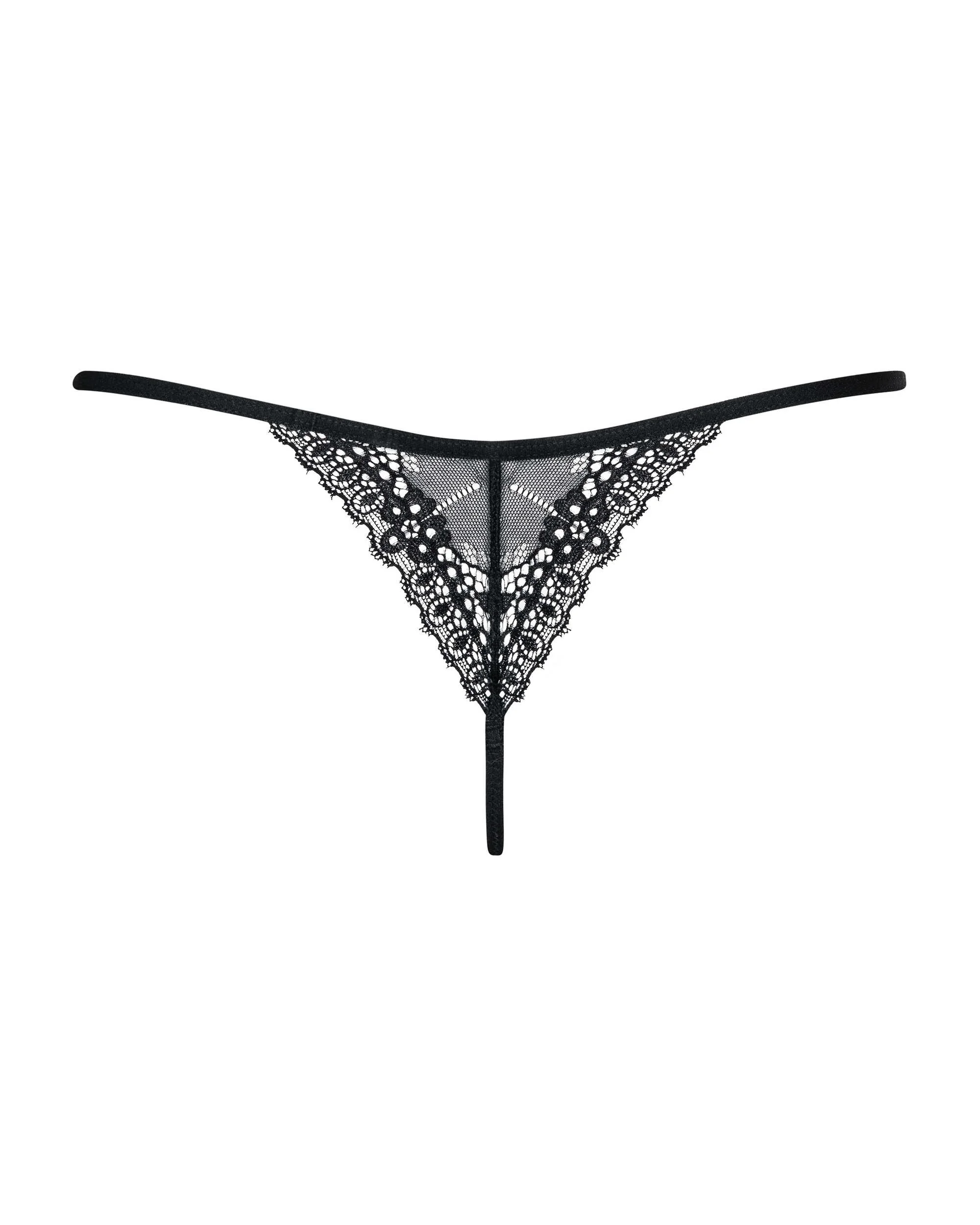 Ein String aus Spitze mit subtilen Blumenmustern. Die Stickerei auf der Rückseite betont perfekt das Gesäß. Zusammensetzung: 83% Polyamid, 17% Elasthan