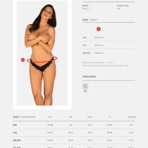 Ivannes Slip Der sexy Slip Ivannes ist definitiv ein Vorschlag für Sie! Eine schöne Spitze auf der Vorderseite, verziert mit einem Schmuckanhänger, verleiht Eleganz und Stil. Ein äußerst verführerisches und durchsichtiges Material auf der Rückseite regt die Fantasie an und lädt zu frechen Spielen ein. Möchten Sie wissen, wie schnell sie die Temperatur im Schlafzimmer erhöhen können? Mit Vergnügen! Entdecken Sie mehr Details: – schwarzer Ivannes Slip – sexy Schnitt – schöner Anblick der Hüften und des Hinterns – Spitzenbordüre auf der Vorderseite – Eleganz und Chic – transparentes Material auf der Rückseite – ein unglaublich sexy Look! – hübsche Schleife über dem Hintern – zieht die Aufmerksamkeit auf sich – angenehme und elastische Materialien (85% Polyamid, 15% Elasthan)