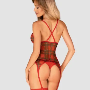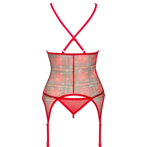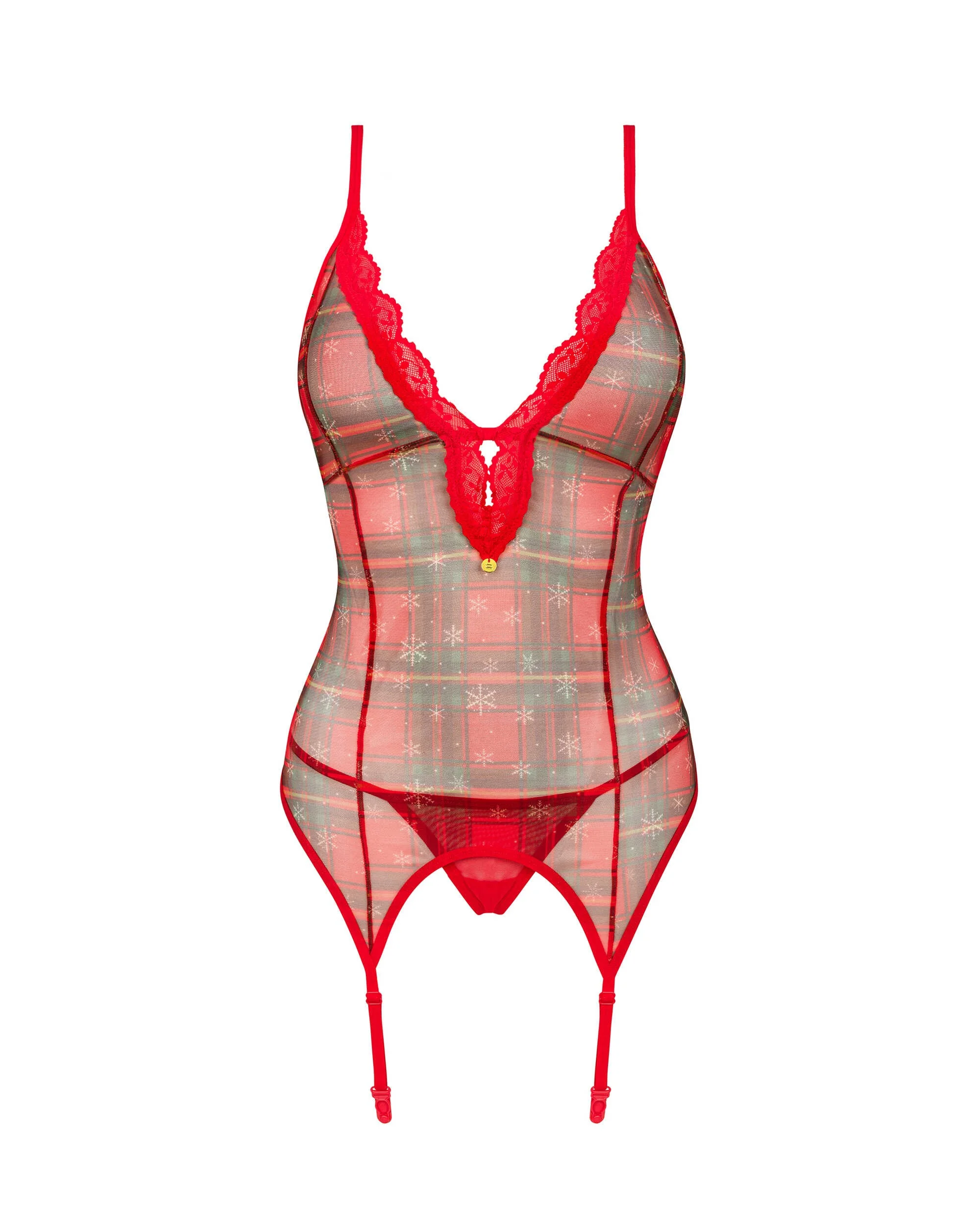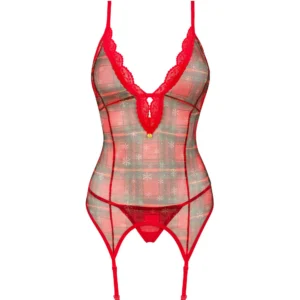 Qui a dit que l’hiver devait être froid ? Le simple fait de porter ce corset réchauffera l’atmosphère à tel point que personne ne pensera à la température qui règne à l’extérieur de la fenêtre ! Voyez comme il met en valeur votre silhouette ! Une idée parfaite pour passer de joyeuses soirées d’hiver ensemble…En savoir plus :- un corset avec un motif de Noël et un string rouge- dentelle à l’encolure – pour attirer l’attention- bretelles réglables – pour un ajustement parfait- pendentif doré – détail élégant- tissu élastique – comme une seconde peau ! Composition : 90% polyamide, 10% élasthanne