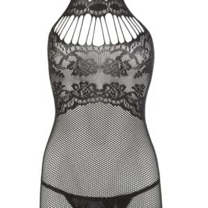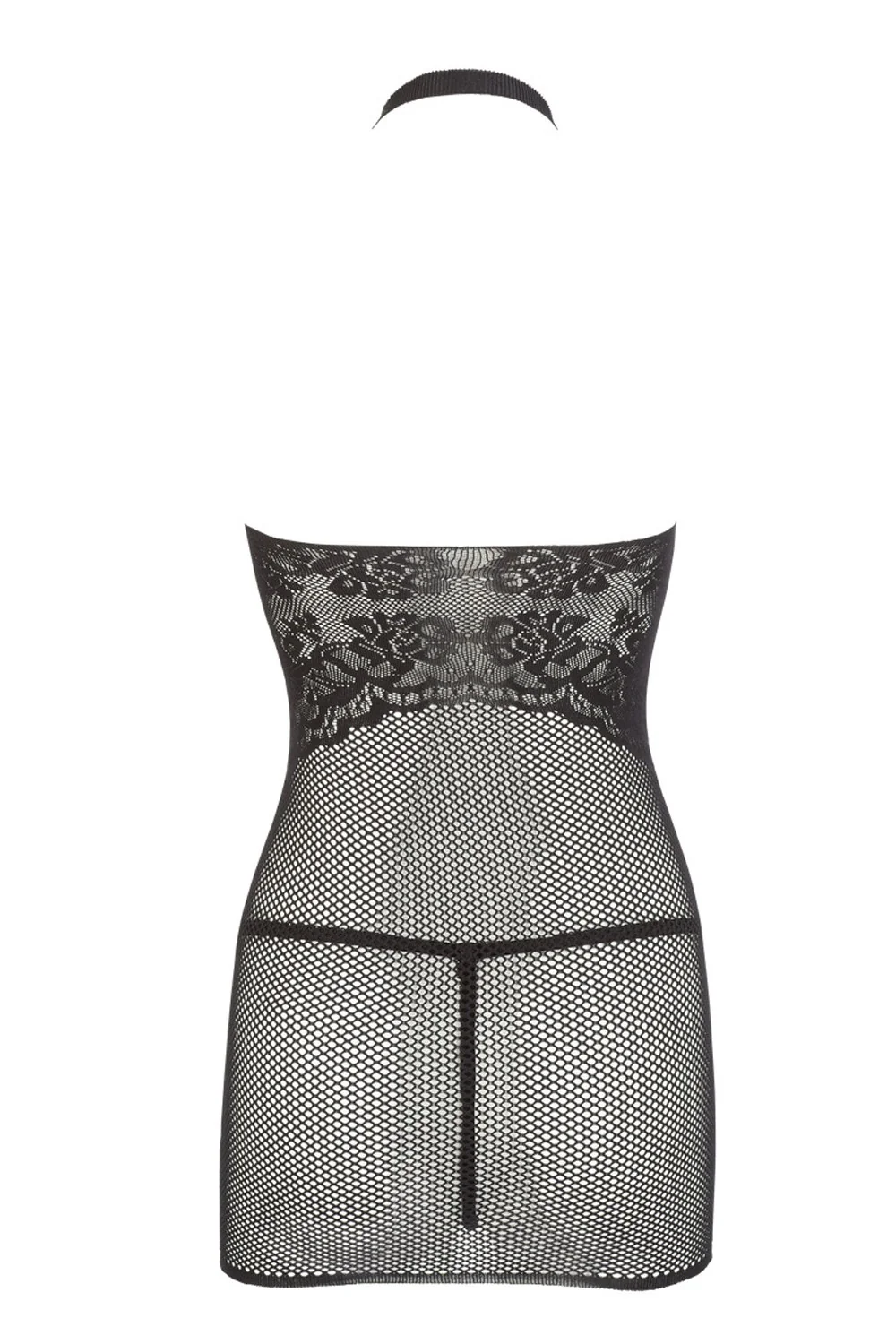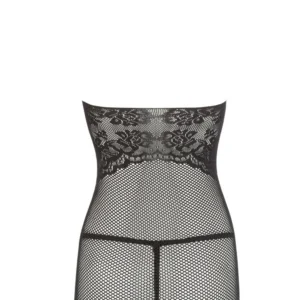 Wunderschönes kleines Kleid aus schwarzem Netz, sehr elastisch und nahtlos, das Ihre Silhouette perfekt umschmeichelt. Rundhalsausschnitt mit offenem Rücken. Kleine Spitze auf der Brust und dem Rücken. Der Spitzenstring ist inklusive. Kleines Kleid aus feinem schwarzen Netz, nahtlos, mit Spitze auf der Brust. Passender String aus der Cottelli-Kollektion. Zusammensetzung: 90% Polyamid, 10% Spandex.