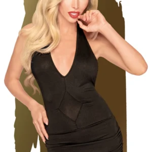 Schwarzes Kleid aus einem undurchsichtigen Material mit tiefem Ausschnitt und offenem Rücken. Ein sexy und gewagtes Design. Tiefer Ausschnitt. Undurchsichtiges schwarzes Kleid mit Taillenband durch seitliche Kordelzug. Offener Rücken. Zusammensetzung: 92% Nylon / 8% Spandex. Genießen Sie diese sexy Lingerie, die nur für Sie kreiert wurde, geschätzt von den Frauen von Penthouse!