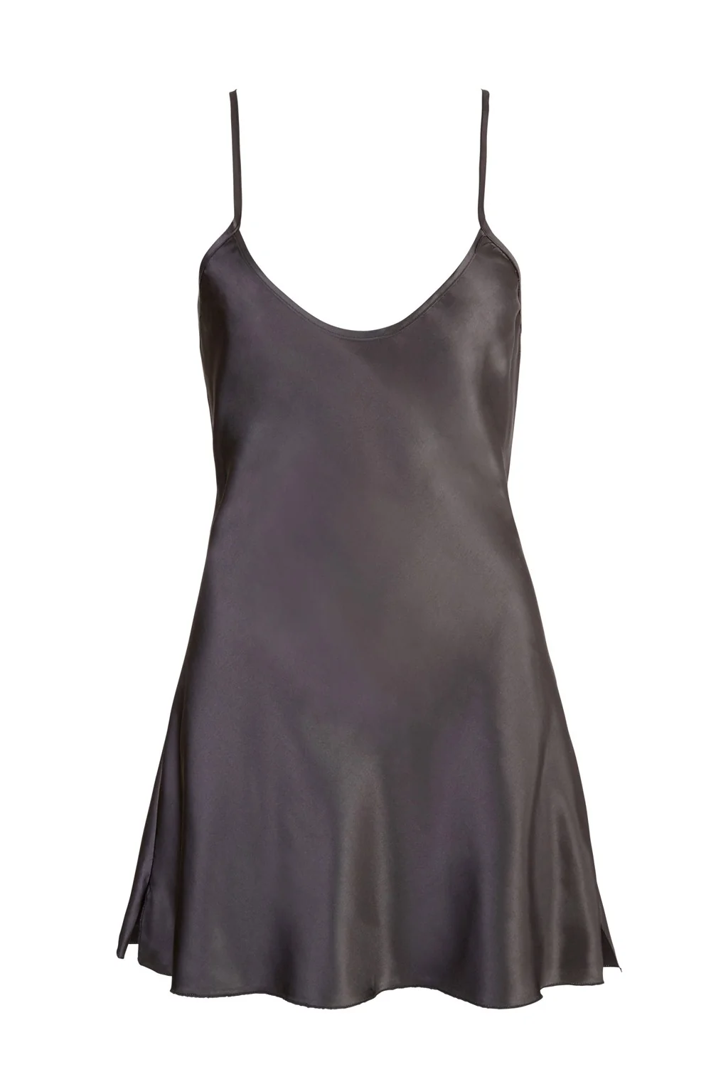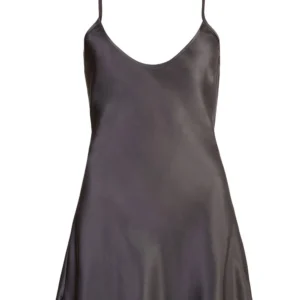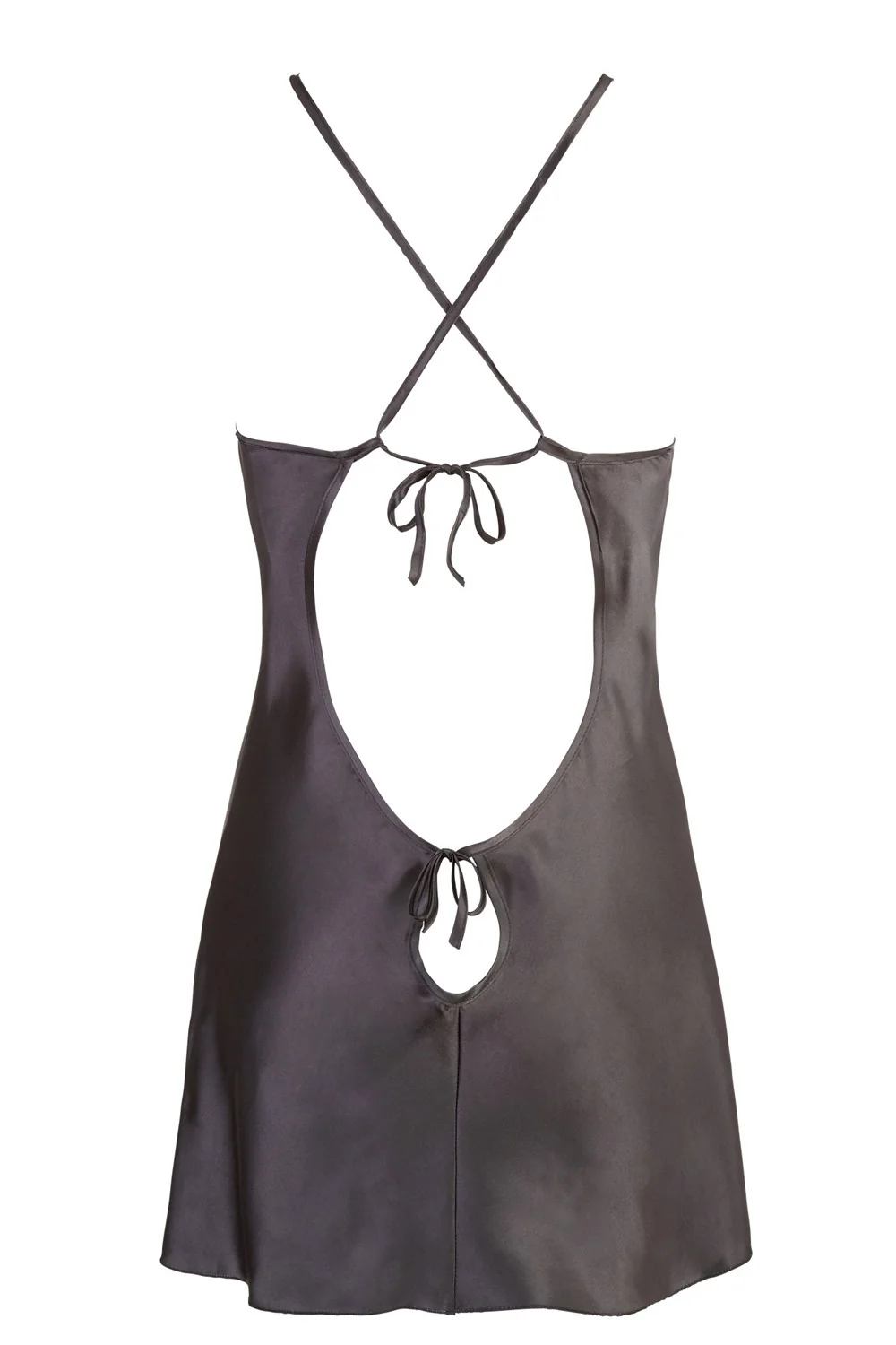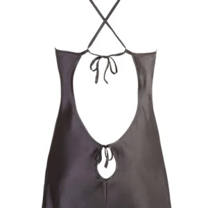 Kurzes Nachthemd aus glänzendem schwarzem Satin mit offenem Rücken – R2750007
