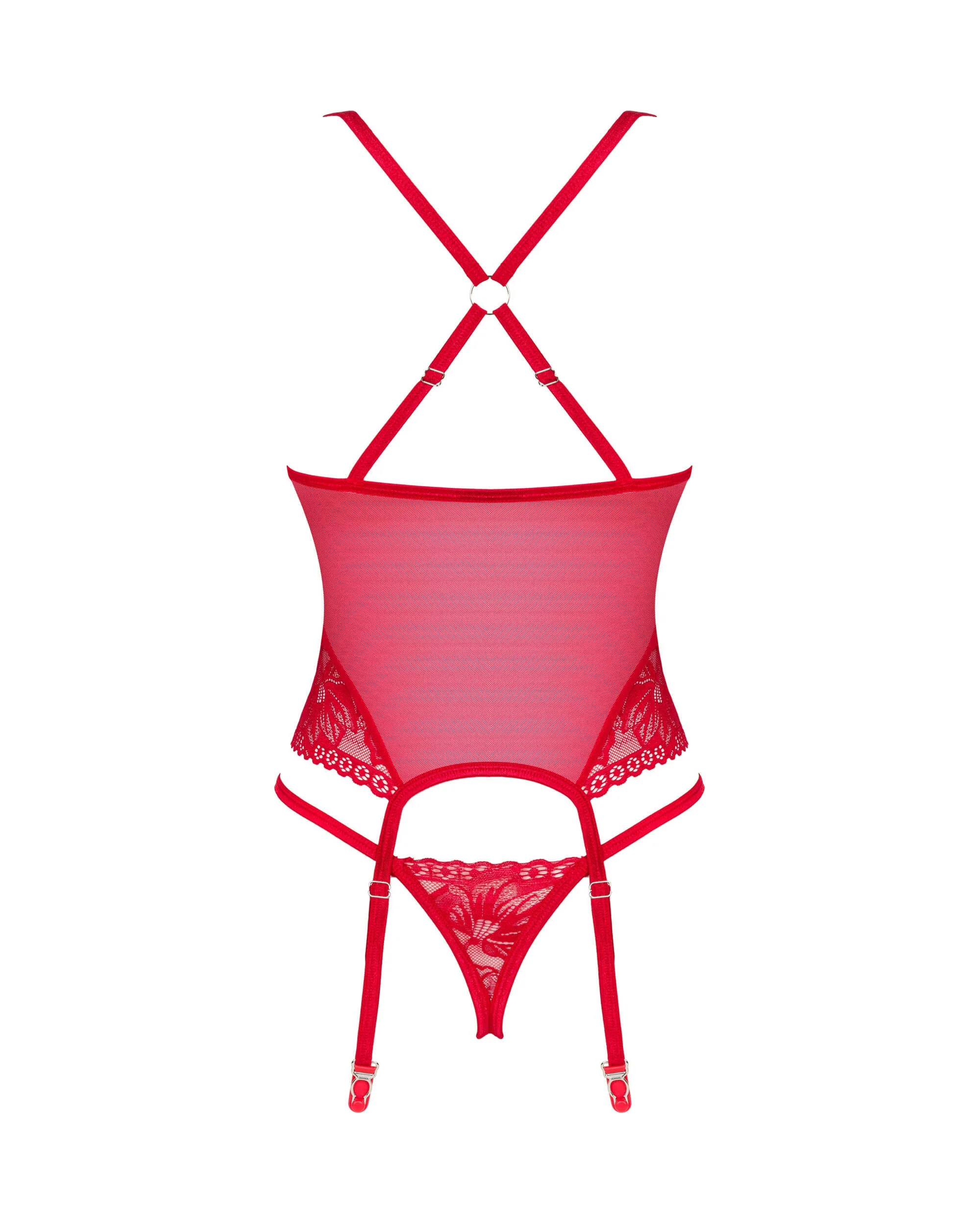 Lacelove Corset Envie de faire monter la température dans la chambre ? Le corset et le string Lacelove sont le choix parfait. Cet ensemble sensuel d’un rouge intense mettra parfaitement en valeur votre silhouette, et les empiècements en dentelle attireront de nombreux looks hot. Préparez-vous aux compliments ! Découvrez plus de détails :- corset et string rouges- ajustement parfait grâce aux bretelles réglables- armatures modelant délicatement la poitrine- dentelle florale – un détail attrayant- pendentif en argent – ajoute de l’élégance- tissu élastique – gage de confort (corset : 94% polyamide, 6% élasthanne ; string : 90% polyamide, 10% élasthanne)