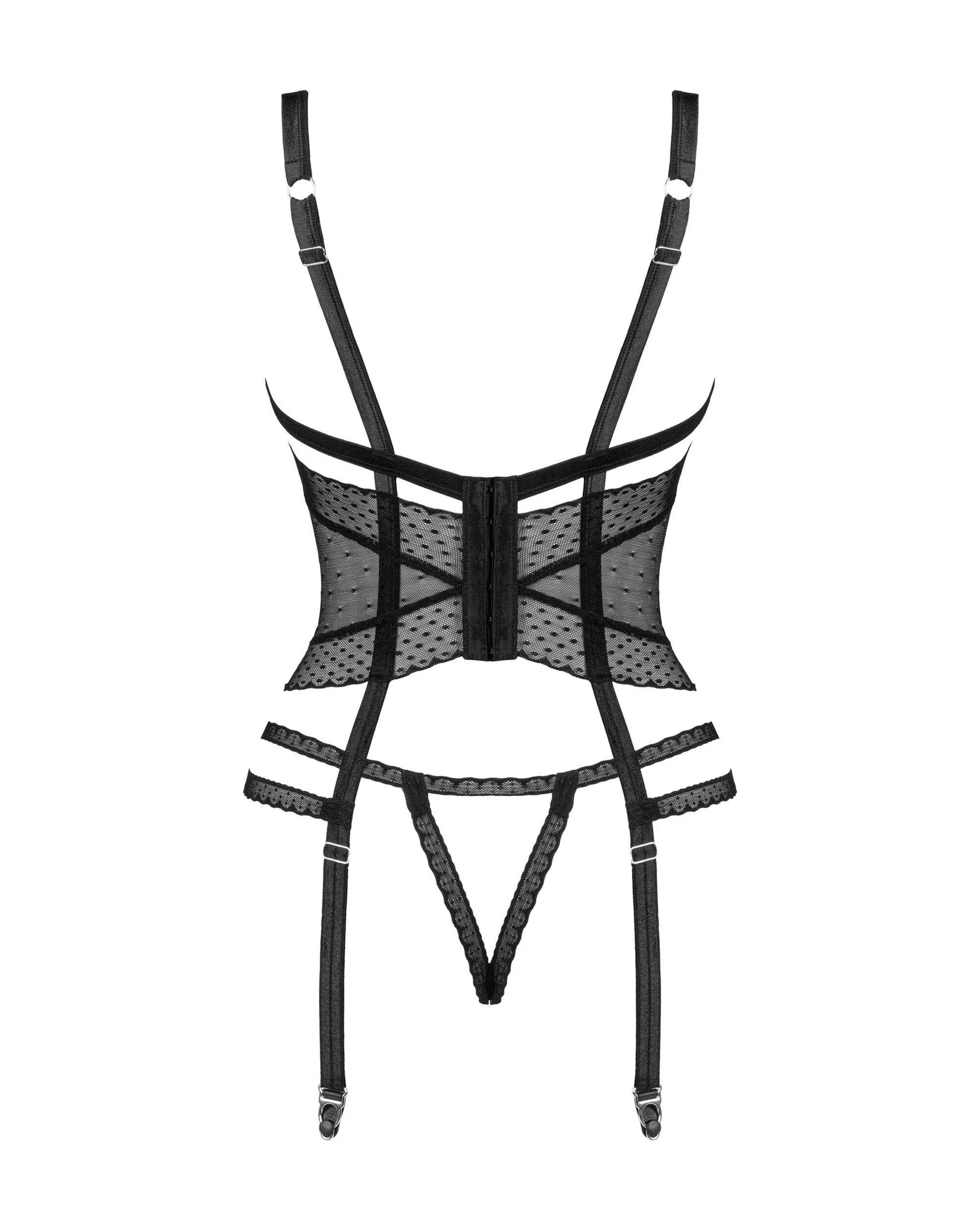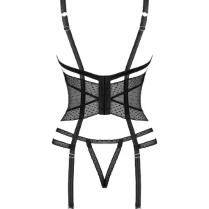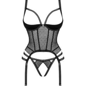 Corset Lanelia Le corset sensuel Lanelia saura pimenter vos soirées romantiques à deux ! Les bretelles sexy en combinaison avec une maille délicate et transparente sont une combinaison digne du péché, et la coupe ouverte permettra des plaisirs encore plus ludiques. Si vous souhaitez réchauffer l’ambiance au maximum, ajoutez-le à votre collection dès maintenant ! Découvrez plus de détails :- corset Lanelia noir- maille translucide sexy qui stimulera les sens- soutien-gorge ouvert – plus de piquant- bretelles réglables – un ajustement parfait- pendentif en argent sur le buste – attire l’attention et ajoute de l’élégance- fermeture à crochet et ?illet au dos- bretelles jarretelles réglables – confort de port- string avec un entrejambe ouvert – régalez-vous de la version max !- matière agréable au toucher (85% polyamide, 15% élasthanne)