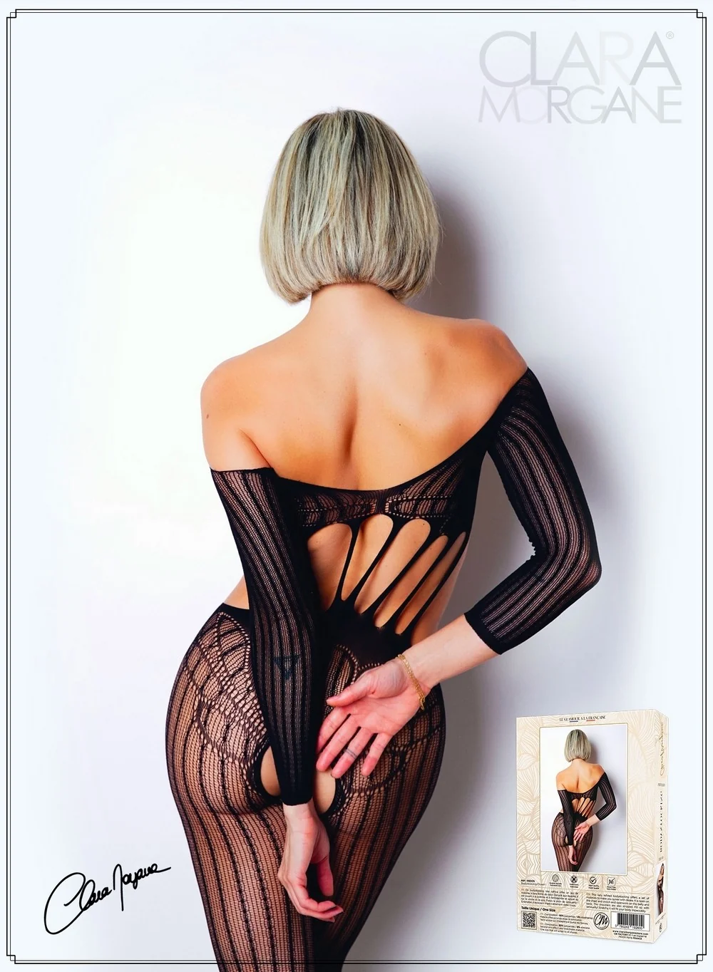 Langärmeliger Bodystocking aus der Clara Morgane Kollektion, mit freien Schultern und offenem Busen. Eine Lotusblume ist rund um den Schritt gezeichnet. Der Stoff passt sich perfekt Ihrer Silhouette an, dehnbar und gleichzeitig figurbetont aus der Clara Morgane Kollektion. Zusammensetzung: 92% Polyamid und 8% Elasthan
