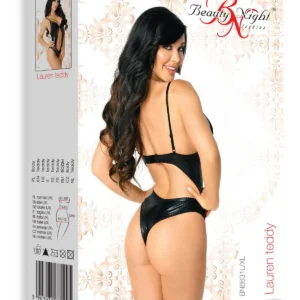 Le body string Lauren est une parfaite combinaison de matières séduisantes et délicates. Son décolleté est rehaussé par des bonnets en dentelle noire qui se rejoignent avant de laisser une nouvelle ouverture s’étendre vers le bas du corps en jouant avec la transparence sensuelle…L’effet wetlook sur les côtés viendra terminer sa course dans le dos pour créer un string incroyablement flatteur.Une lingerie originale et unique en son genre avec des bretelles réglables et une fermeture au dos par agrafes.Composition : 88% Polyester 12% Elasthanne