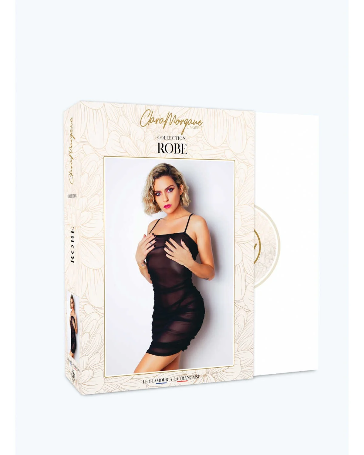 Caresses façon satin noirFaçon satin noir, subtilement transparent, cette petite robe révèle à la fois l?ardeur et la sensualité. Cette petite robe sublime dont la forme est très chic, ne laissera pas indifférent. Le tissu effet seconde peau épousera merveilleusement votre corps.