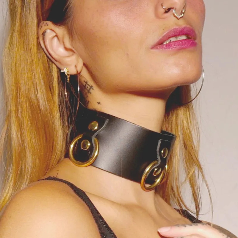 HALSBAND: EINE UNWIDERSTEHLICHE EINLADUNG ZUM SPIEL Der Choker ist ein großer Klassiker der Unterwerfungs-Spiele, dieser ist so konzipiert, dass die Person vollständig in den Händen des anderen ist. Tatsächlich ermöglichen die drei Befestigungsringe am Choker eine totale Unterwerfung. Sie laden dazu ein, verschiedene Accessoires anzubringen. So kann man ihn mit einer Leine, einem Seil oder den Handschellen derselben Kollektion verbinden. Es ist auch möglich, einfach die Finger in die Ringe zu stecken, um den anderen zu sich zu ziehen. Lassen Sie sich inspirieren und kreieren Sie Ihr eigenes Fessel-Kit. EIN MODE-ACCESSOIRE, UM SICH ABZUHEBEN Dieser Choker aus schwarzem Leder erzeugt ein köstliches Gefühl der Umklammerung durch die Breite des Leders, das den Hals umschließt. Das Leder ist weich, was es ermöglicht, auf vielfältige Weise zu fesseln, ohne Verletzungsgefahr. Einheitsgröße, er wird im Nacken verstellt, um sich jedem Halsumfang anzupassen. Seine goldfarbenen Stahlbefestigungsringe verleihen ihm einen Hauch von Eleganz, der ihn sowohl zu einem Mode-Accessoire macht, um sich abzuheben und aufzufallen, als auch zu einer unwiderstehlichen Einladung zum Spiel.