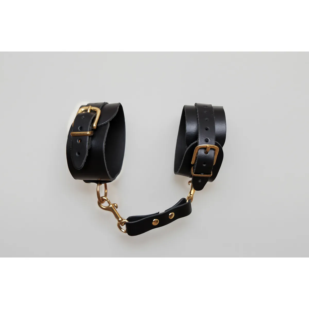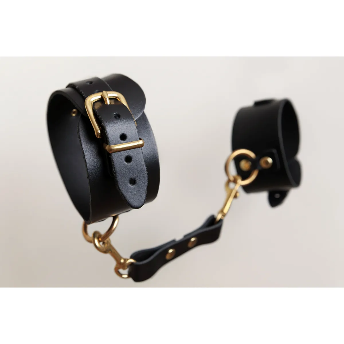 Handschellen: ARMBÄNDER, DIE IHR SPIEL NICHT VERBERGEN Diese schwarzen Lederhandschellen ermöglichen es, ohne Verletzungen zu fesseln. Keine Angst vor Schnitten oder Schwitzen, ihr weiches und umschließendes Material ist dafür gemacht, unter allen Umständen bequem zu sein. Sie sind dafür gemacht, die Handgelenke effektiv, aber sanft zu halten. Sie sind perfekt für sicheres BDSM-Spiel. Man trägt sie, um gesehen zu werden, und behält sie bis zum Morgengrauen, sowohl bei Partys als auch in der Intimität… EIN ANPASSBARES FESSEL-KIT NACH BELIEBEN Diese Handschellen sind durch einen eleganten, abnehmbaren Riemen aus Leder und vergoldetem Stahl miteinander verbunden. Man kann die Handschellen natürlich miteinander verbinden, aber auch mit dem Halsband oder den Fußfesseln derselben Serie kombinieren… Erstellen Sie Ihr komplettes Kit, indem Sie sie kombinieren, um unendliche Möglichkeiten zu entdecken und die Unterwerfungsspiele zu variieren. Und das ist noch nicht alles! Weitere Accessoires stehen Ihnen zur Verfügung, wie Gurte oder ein Gürtel, um nach Belieben zu fesseln?
