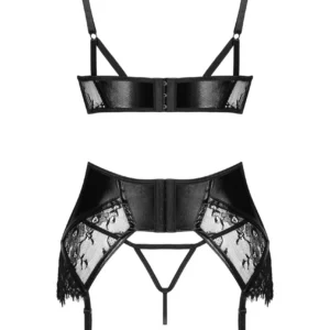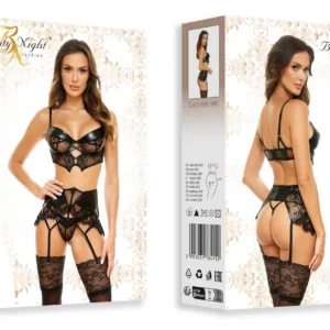 Bel ensemble érotique de la série Leonela en noir. La combinaison d’une dentelle délicate et d’une matière effet mouillé suscitera le désir chez de nombreux hommes. Ce soutien-gorge intrigant avec un mini-corset présente des baleines dans les bonnets et en dessous. Le porte-jarretelles est également renforcé par des baleines, ce qui lui confère un aspect parfait sur la silhouette féminine. Le soutien-gorge et le porte-jarretelles sont fermés par des crochets. L’ensemble comprend une culotte. L’ensemble est livré dans un emballage élégant avec une photo représentant le produit. Taille : S/M et L/XLTaille S/M : (Poitrine : 81-91 cm, B-C, Taille : 56-71 cm, Hanche : 85-97 cm)Taille L/XL : (Poitrine : 91-107 cm, C-D, Taille : 71-91 cm, Hanche : 97-112 cm) Matière : 88% polyester, 12% élasthanne