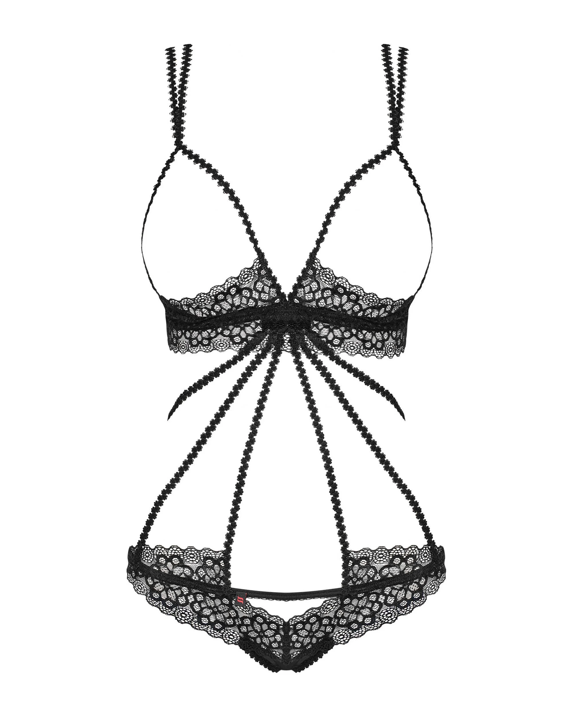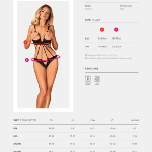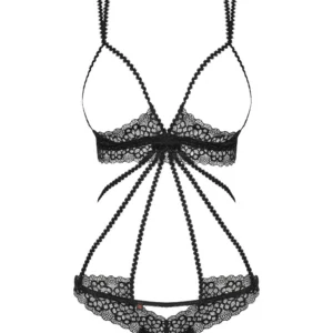 Avec le body Liferia, vous allez réchauffer l’atmosphère ! La poitrine est soulignée par une délicate dentelle, le dos et l’avant mis en valeur par de subtiles lannières couture zigzag pour être encore plus sexy à chaque mouvement… Ajoutez les cache-tétons Liferia pour encore plus de piquant !La beauté dans tous ses détails : Bretelles réglables – ajustement parfaitSoutien-gorge sans armatures – lingerie confortableFermeture au dos par sangle réglableOrnements en argent avec des cristaux – chic et élégantJolie dentelle douce et élastiqueTissus délicats Composition : 90% polyamide 10% élasthanne
