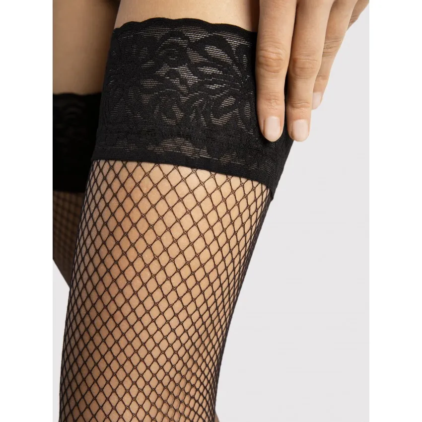 Sinnliche Netzstrümpfe mit sexy Spitze Unsichtbare und elegante Verstärkung im Zehenbereich. Intelligentes mattes Finish, doppelte Silikonbänder für mehr Komfort. Ideal für den täglichen Gebrauch sowie für besondere Anlässe. Zusammensetzung: 86% Polyamid, 14% Elasthan