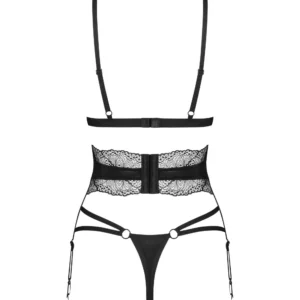 Ensemble 3 pièces LobellisSavourez le trio Lobellis : soutien-gorge, porte-jarretelles et string. Chaque pièce est méticuleusement travaillée, chaque détail considéré. L?union de la dentelle et du tissu noir forme une harmonie parfaite. Avec des crochets dans le dos, des bretelles réglables et des accents sensuels, le confort se marie parfaitement avec la séduction. – un ensemble composé d?un soutien-gorge, d?un porte-jarretelles et d?un string- tissu noir- dentelle unique- connecteurs en métal noir- bretelles et porte-jarretelles réglables- pendentif brillant- fermeture à crochet et à oeil à l?arrière- string et soutien-gorge (85% polyamide, 15% élasthanne); porte-jarretelles (90% polyamide, 10% élasthanne)- conçus dans l?UE- sans nickel