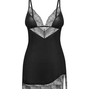 Nuisette et string LobellisMettez-vous à l?honneur avec la nuisette et le string Lobellis, un duo captivant en noir classique. La nuisette courte et le string assorti sont dotés d?un tissu lisse et flexible qui épouse sans effort votre silhouette. Rehaussé de détails en dentelle complexes, cet ensemble garantit que tous les yeux sont sur vous. – ensemble noir ? nuisette et string- tissu lisse et agréable au toucher- laçage arrière- bretelles réglables- pendentif brillant- tissu doux et serré – bordure en dentelle- 85% polyamide, 15% élasthanne – conçus dans l?UE- sans nickel