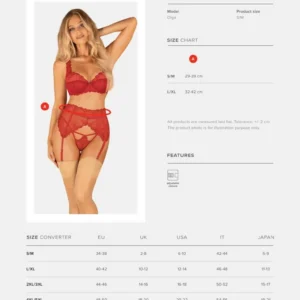 Enflammant les sens, le porte-jarretelles Lonesia est définitivement un incontournable de votre garde-robe ! La coupe rouge juteuse et féminine enveloppera votre corps de sex-appeal et les parures alléchantes rehausseront encore l’ambiance de la soirée à deux ! Combinez-le avec les bas extrêmement sexy S800 et vous créerez un style qui sera toujours associé au plaisir ! Découvrez plus de détails : – Porte-jarretelles Lonesia- coupe féminine – souligne la taille et les hanches- charmante broderie et matière translucide – élégance et look séduisant- fermoir confortable à l’arrière – un ajustement parfait- jarretelles réglables – confort et commodité- pendentif bijou sur le ventre – attire l’attention- matière agréable au toucher (60% polyester, 40% polyamide)