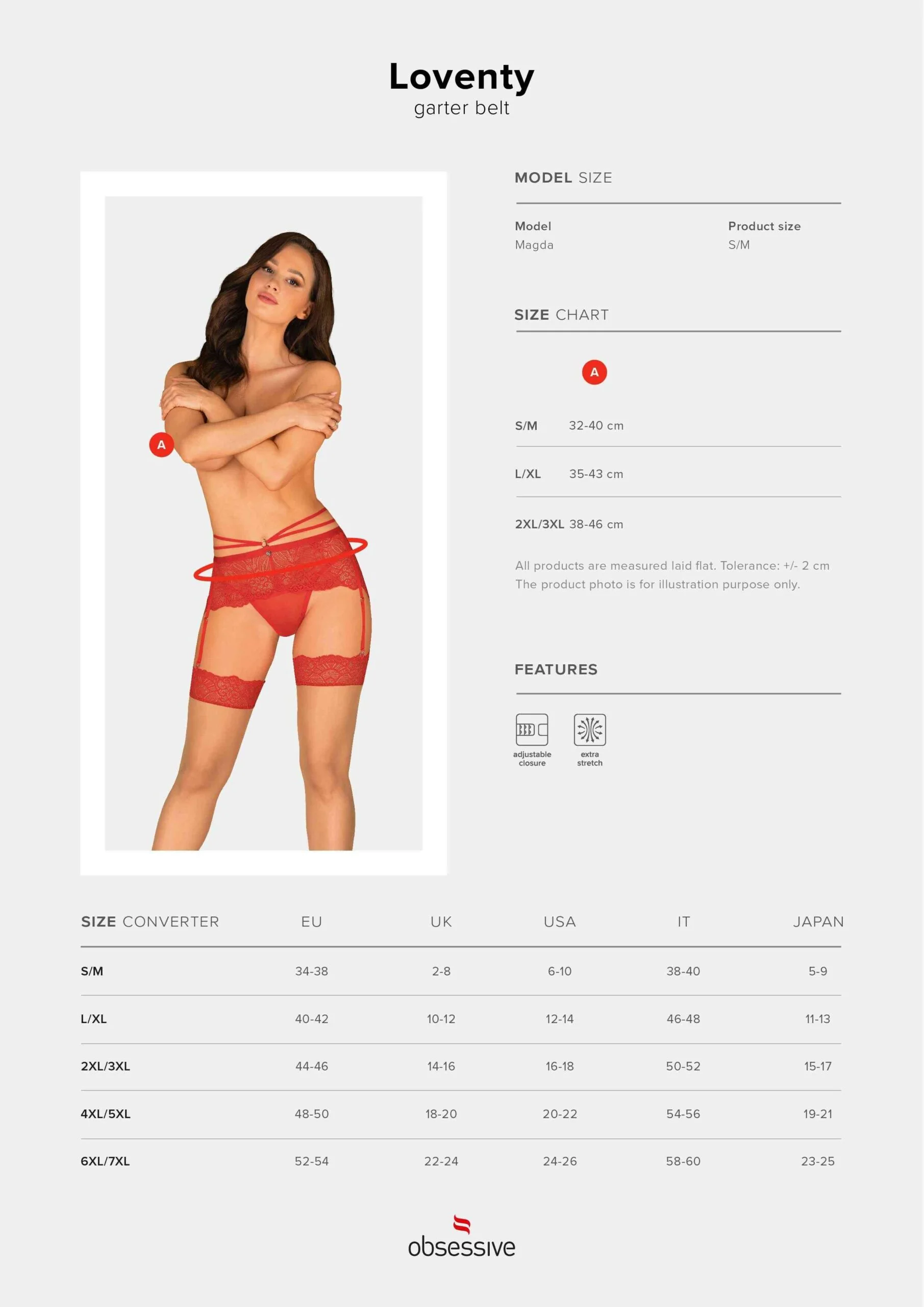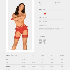 Porte-jarretelles Loventy Porte-jarretelles rouge en dentelle Un porte-jarretelles qui vous rendra fou vous attend déjà chez Obsessive. Si vous pensez que nous n’avons rien d’autre pour vous surprendre, nous supposons que vous n’avez pas jeté un ?il à Loventy. Les bretelles souples et la dentelle translucide mettront vos courbes en valeur avec une teinte de coquetterie. Ce porte-jarretelles est parfait pour les femmes qui aiment réchauffer l’atmosphère de leur chambre et sont conscientes de leur passion. Voir plus de détails : – porte-jarretelles subtil en rouge – fermeture à plusieurs étages sur le dos – bretelles élastiques ? un ajout élégant qui garantit un look épicé – un pendentif brillant sur le devant – porte-jarretelles réglables ? un vrai confort de port – dentelle agréable avec un motif floral unique – matière subtilement translucide et fesses apparentes ? formes exquisement soulignées – élasticité idéale du tissu (90% polyamide, 10% élasthanne)