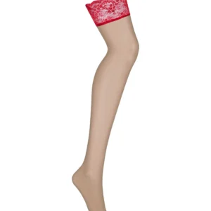 Comment pouvoir retirer les yeux des jambes qui porteront ces splendides bas sexy rouges ? Des bas d’une rare qualité et d’une originalité incroyable, en effet la jambe sera d’une couleur chair tandis que les jarretières seront d’une dentelle rouge, mais qui saura ce qu’il y a dessous ? La composition est de 90% Polyamide 10% ElasthanneDécouvrir toute la collection de lingerie sexy Lovica Obsessive