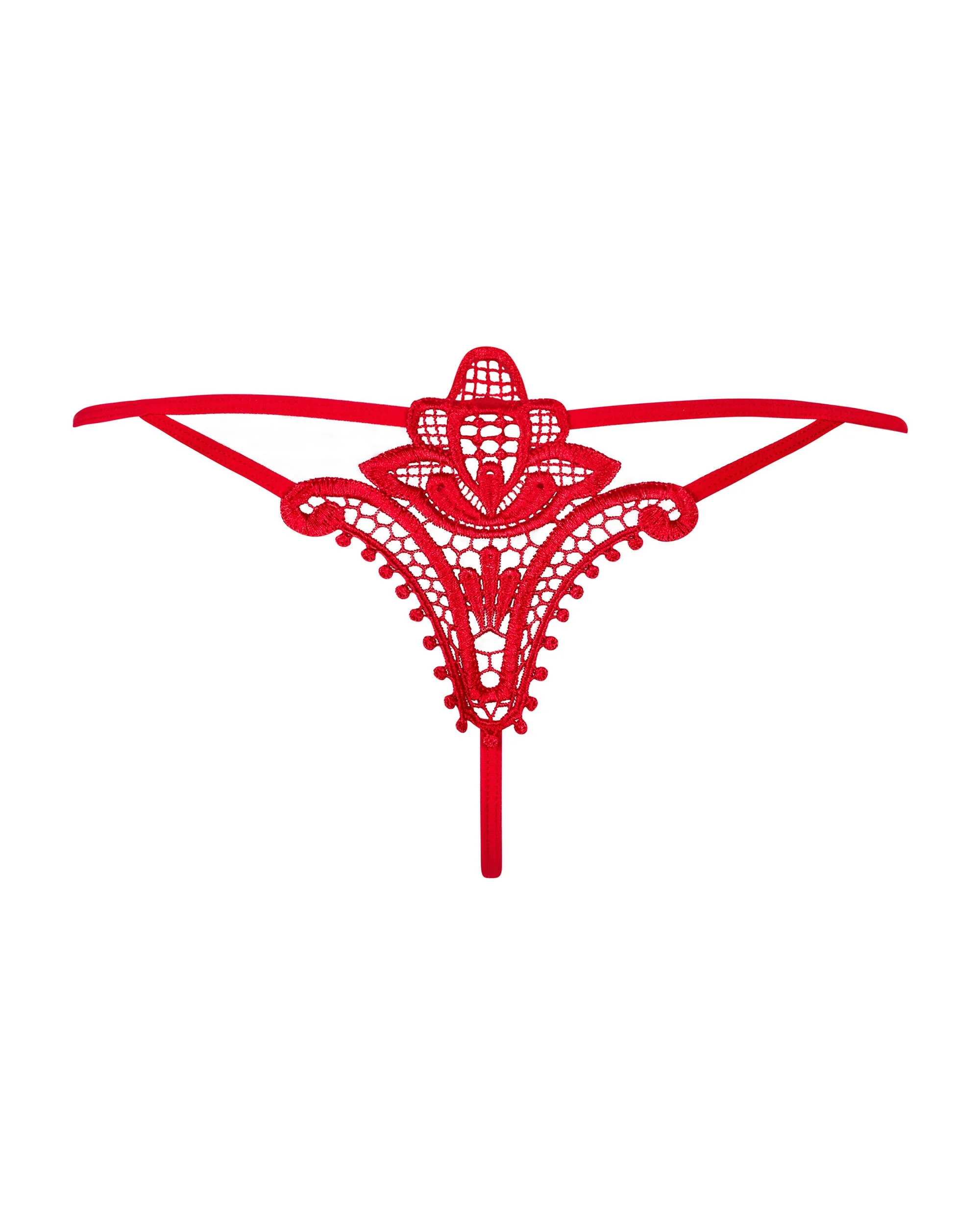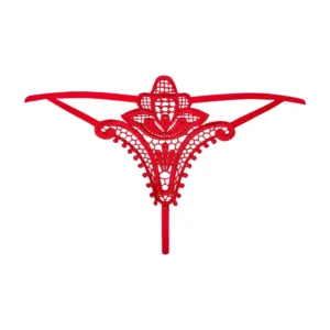 Erliegen Sie unserem Bestseller! Dieser elegante rote elastische String ist sehr angenehm zu tragen. Eine verführerische Blumenstickerei schmückt die Rückseite Ihres Gesäßes. Zusammensetzung: 94% Polyamid, 6% Elasthan