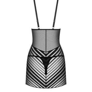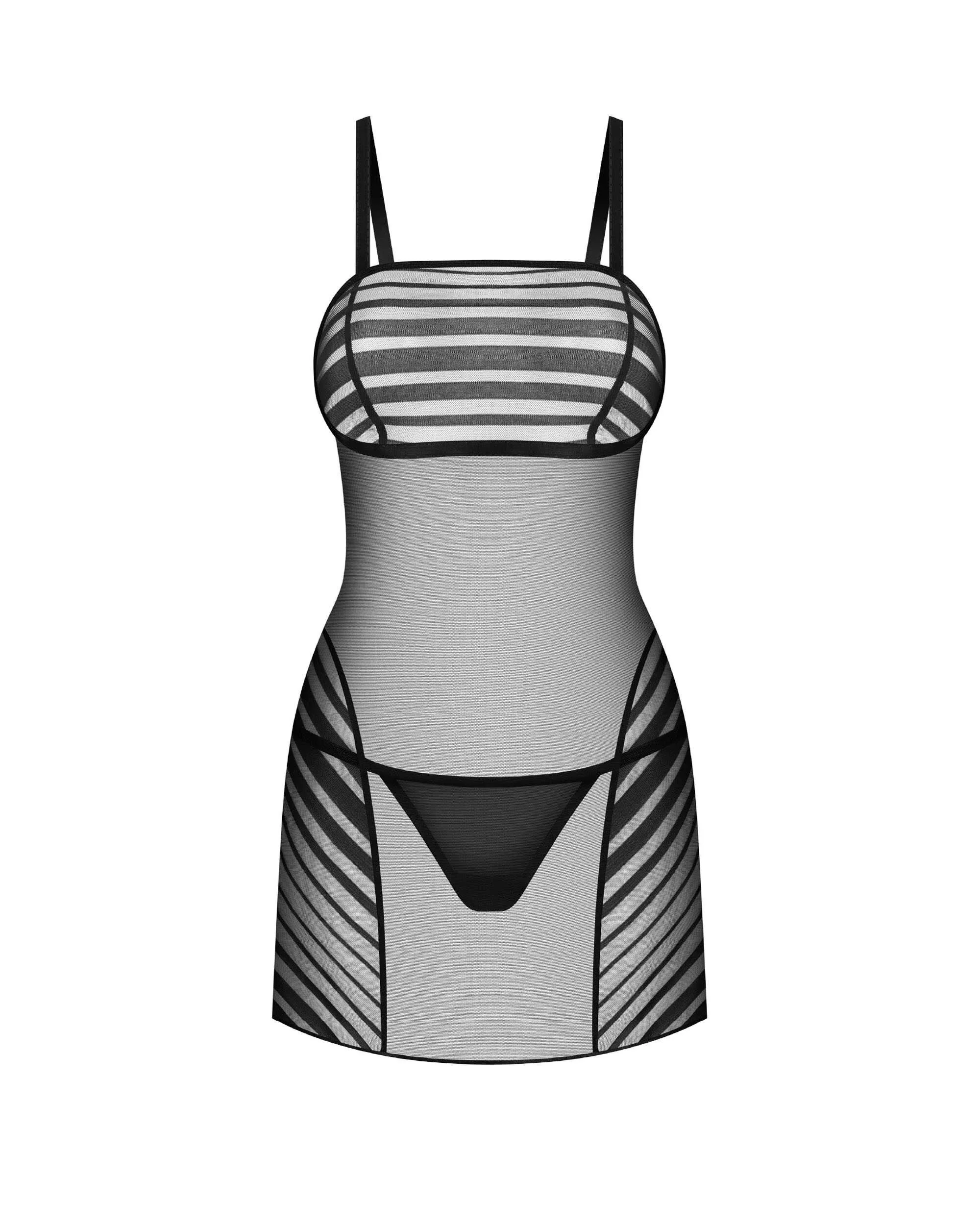 Lune Bellis nuisette et string Lingerie de luxe qui met en valeur votre beauté naturelle. Cette nuisette mi-cuisse enveloppe votre corps dans un tissu transparent orné de rayures noires sur le buste, les hanches et les fesses. Bretelles larges et réglables pour un ajustement parfait. Fabriquées à partir des tissus les plus fins et les plus doux pour un confort ultime. ? ensemble nuisette et string? tissu transparent à rayures? sangles réglables? string (85 % polyamide, 15 % élasthanne); chemise de nuit (90 % polyamide, 10 % élasthanne)? conçu dans l?UE? sans nickel
