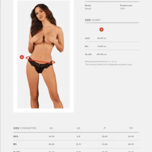 Maderris Slips Klassische Maderris Slips sind die ideale Wahl für jeden Anlass. Die unfehlbare Spitze und ein verführerischer Schnitt, der das Gesäß betont, sind sowohl bei einem Date als auch bei der Arbeit perfekt. Wenn Sie nach Dessous suchen, die Ihnen Selbstvertrauen geben, dann ist es ein absolutes Must-have in Ihrer Garderobe! Erfahren Sie mehr Details: – schwarze Spitzenslips – sexy Schnitt, der das Gesäß betont – ein silberner Anhänger ? eine interessante Ergänzung – angenehmer Stoff ? eine Garantie für Komfort (90% Polyamid, 10% Elasthan)