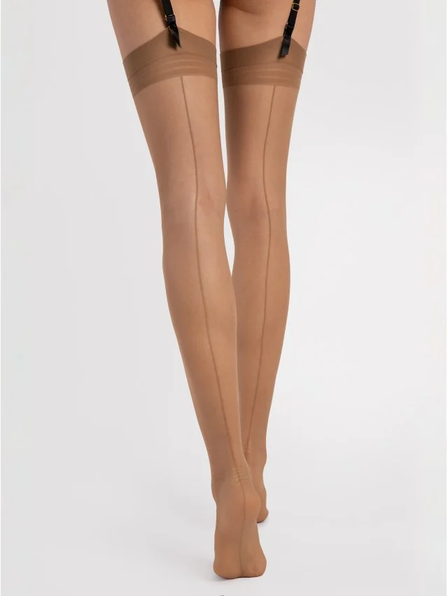 Des bas sexy de couleur beige doré, doux et confortables, à porter avec vos porte-jarretelles préférés. Classe assurée avec leur couture sur l’arrière de la jambe. Renforcement invisible et élégant au niveau des orteils.Composition : 86% polyamide, 14% élasthanne