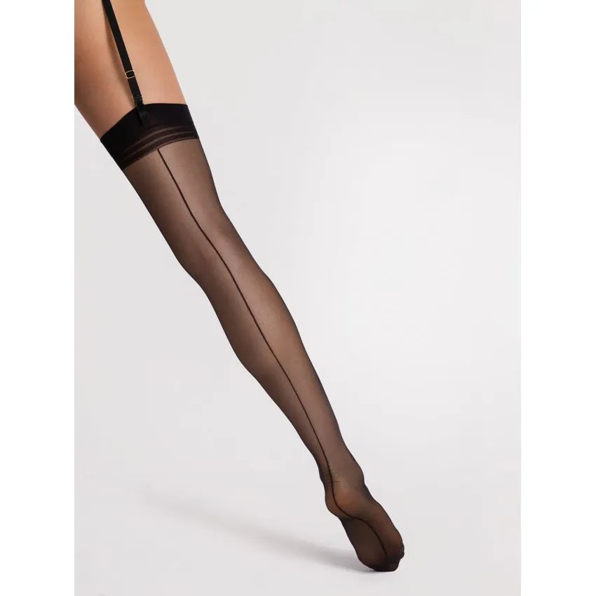 Sexy und unverzichtbar sind die Adjektive, die diese schwarzen Strümpfe von Fiore am besten beschreiben. Um Ihre Beine zu betonen, bieten die Marlena-Strümpfe eine feine schwarze Naht auf der Rückseite. Sie sind unverzichtbar in Ihrer Garderobe mit ihrem minimalistisch grafischen Stil der Strumpfhalter. Verstärkte Fußspitzen und hochwertige Garne gewährleisten eine optimale Haltbarkeit. Zusammensetzung: 86% Polyamid, 14% Elasthan